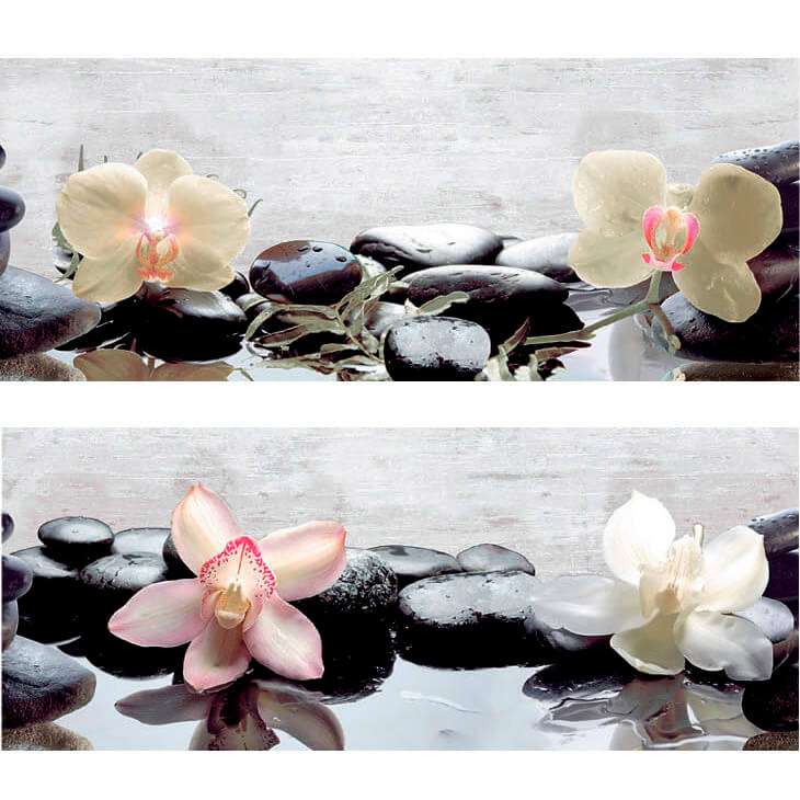 Глянцевая гладкая керамическая плитка с изображенинем цветов лотоса.